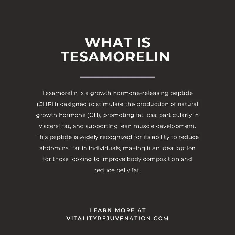 Tesamorelin is a growth hormone–releasing peptide recognized for its role in supporting visceral fat metabolism and lean muscle development. It is often incorporated into wellness plans focused on body composition and metabolic health.